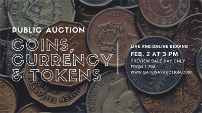 Hey there! Join us live or online for an exciting Auction Event featuring a cool collection of Coins, Currency, and Tokens. Whether you're a collector or just curious, this is the place to discover unique items and maybe snag a treasure or two. Don’t miss out on the fun – come see what's up for grabs!